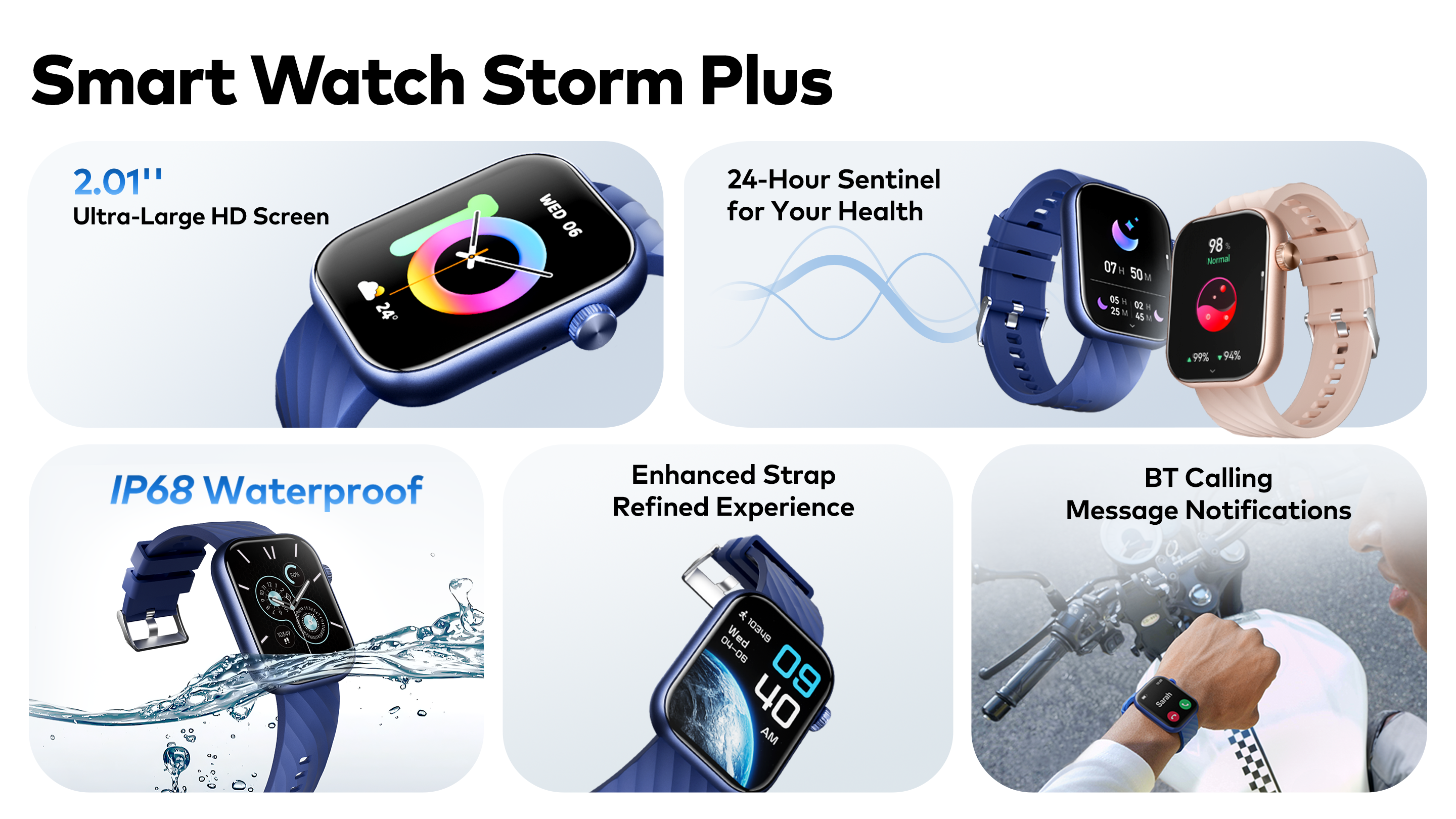 2.01" Ultra Large HD Screen | IP68* Waterproof | Upgraded Heart Rate Monitoring